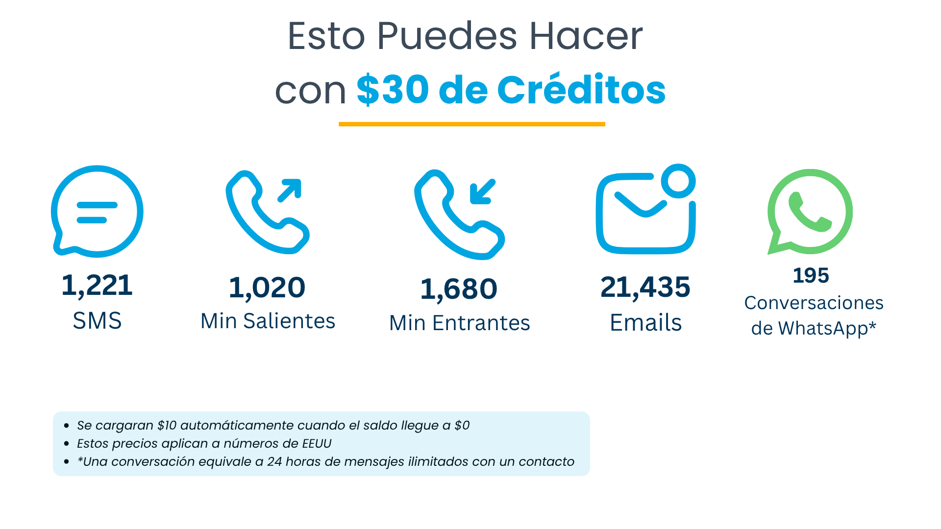 $30 en créditos de cortesía (SMS, emails y llamadas)